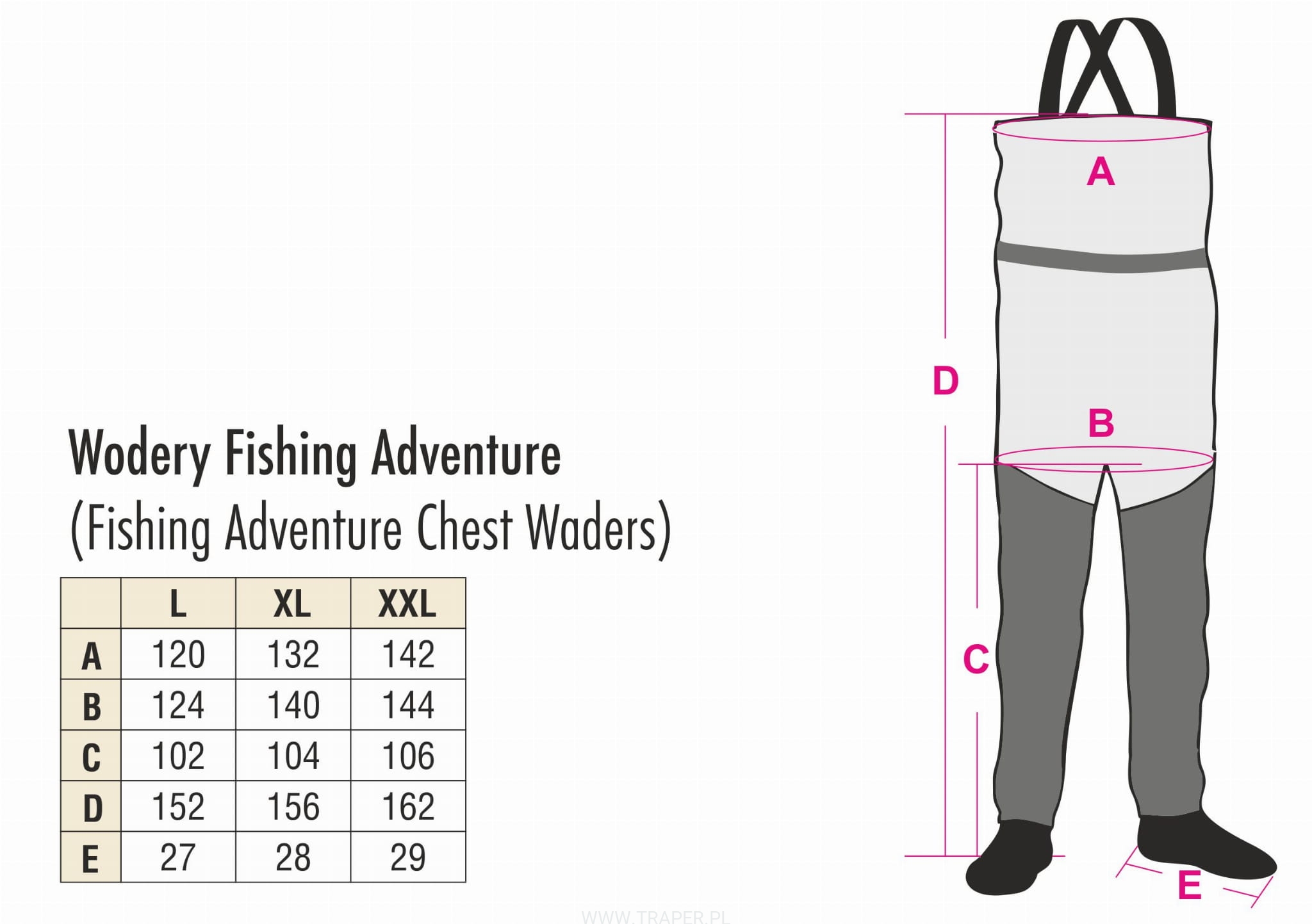 TRAPER ŚPIOCHY DO BRODZENIA ZE SKARPETĄ FISHING ADVENTURE - XXL WODERY