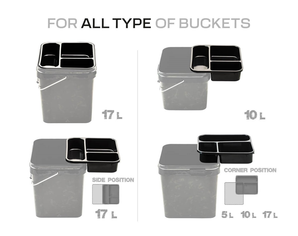 Praktyczny i wytrzymały wkład do wiadra, idealny dla wędkarzy ceniących porządek, mobilność i szybki dostęp do akcesoriów. Trzykomorowa konstrukcja pozwala wygodnie posegregować przynęty, zanęty oraz drobne akcesoria, a formowany uchwyt ułatwia wyjmowanie wkładu z wiadra.
